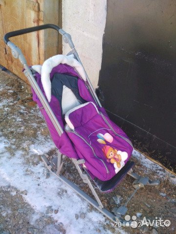 Санки коляска, цвет подойдёт как для девочки или мальчика, тёплые, на колёсах, подходят до 3х лет. Состояние: Б/у BuyReklama.ru