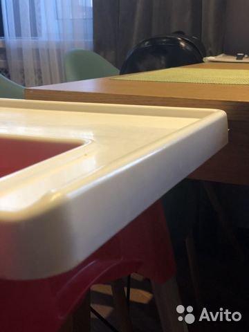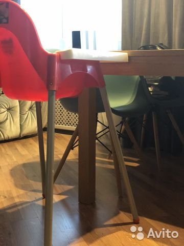 Стул высокий детский со съемным столиком для кормления. Столик позже можно снять и придвигать стул к общему обеденному столу. Все части съемные. Легко моется. ИКЕА.