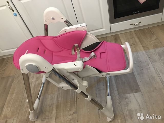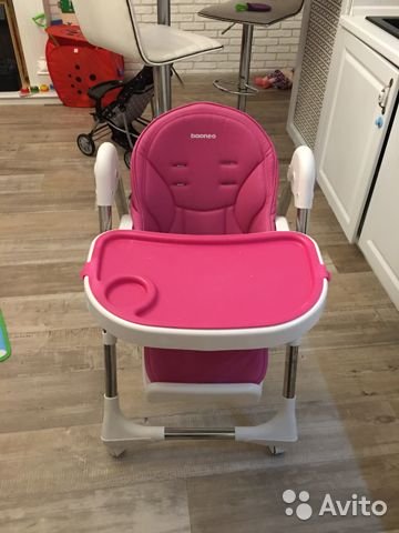 Стул для кормления в отличном состоянии красивого яркого цвета «фуксия», материал экокожа-очень приятен к коже, малыш не потеет в нем; регулировка спинки от лежачего до полностью сидячего, регулировка положения подножки, регулировка высоты положения стула; съемный столик со съемным подносом; блокировка колес.